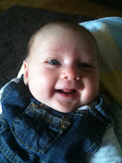 Here she is wide awake, but thankfully smiling! So the laundry waited whilst we had play time!