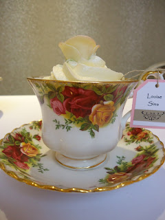 I also did an alternative version with an added strip of Crumb Cake textured cardstock and the motif is from the Wedding Sweet set. Liz added this to her vintage teacup cupcakes, which look a-ma-zing!!