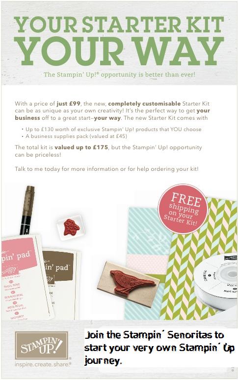 Joining my team of Stampin’ Senoritas you will not only get your £130 worth of product you also get business supplies worth £45 and free shipping! That’s on top of my support whether it be to start up your own business or just making the most of your Stampin’ Up goodies. There is no obligation to buy anything after this if you don’t want to, and you don’t have to sell anything either. You can just enjoy your stash! What have you got to lose?