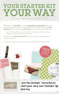 I’m back with the other amazing news from Stampin’ Up this month. Not content with a fabulous new Mini catalogue jam packed full of lovely products, we also have a new and revised Starter Kit which it totally customisable and available from TODAY! You get to choose £130 worth of product for the great price of £99 – a fab way to attack that long wish list or a bargain way to start your own business!!