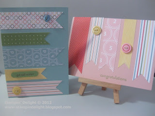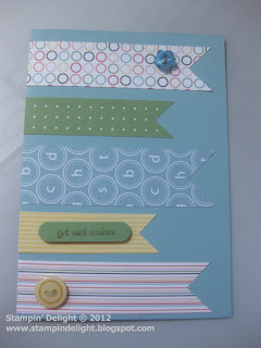 The card uses various strips of Designer papers at different lengths and widths to create a series of banners. The fishtail end is created with the square punch. Simple yet effective.