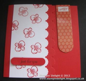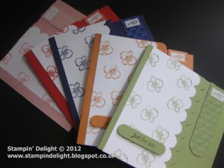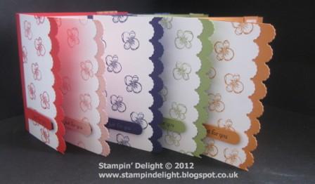 The 5 colours are the 2010-2012 In Colours – Poppy Parade, Blushing Bride, Concord Crush, Pear Pizzazz and Peach Parfait. These retire in September so if you have fallen in love with Poppy Parade like me, best stock up on that card stock now, before it’s all gone.